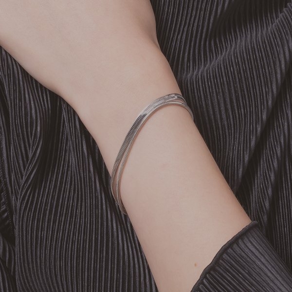 2種の太さをレイヤードさせたスネークチェーンブレスレット。